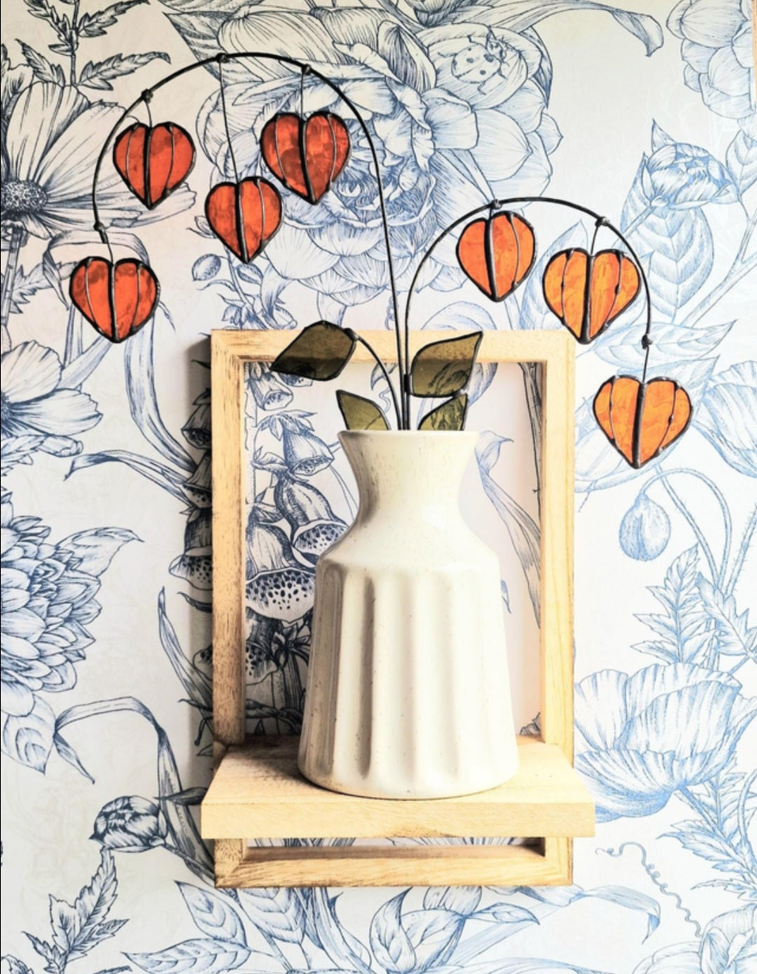 Elevate your home decor with our artisan handmade Chinese Lantern plant stem stained glass art piece.
