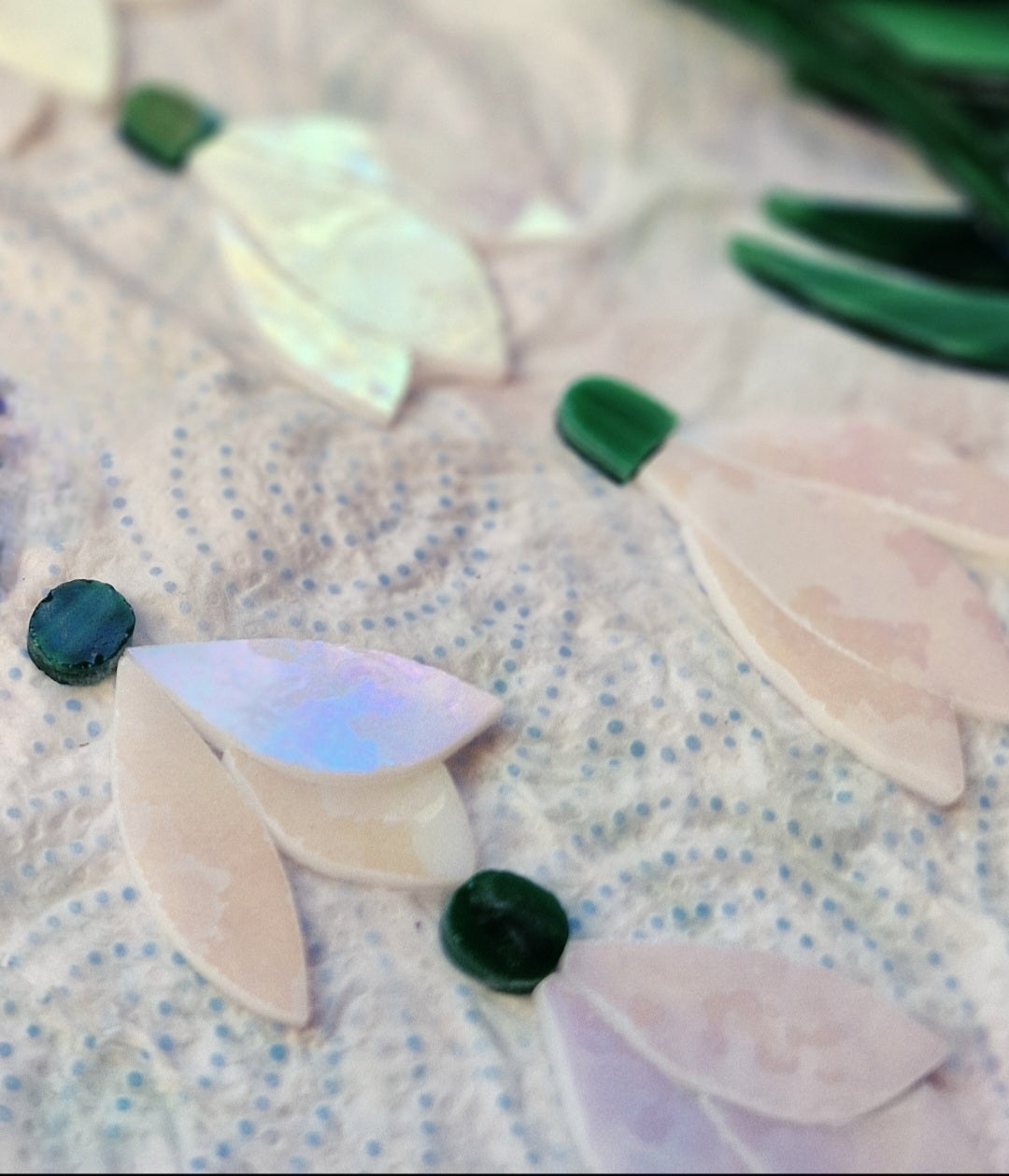 Each snowdrop is meticulously created aboard my narrowboat, Willow Aurora, using the traditional Tiffany copper foil method. I’ve selected a premium iridescent white stained glass for the petals; as the light changes throughout the day, the glass shimmers with a soft, oil-slick glow, mimicking the way real frost sparkles on a petal.